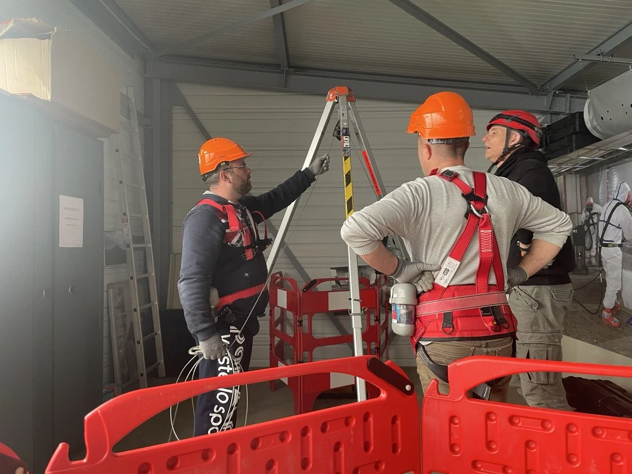 Au-delà des aspects réglementaires et techniques, cette session a mis l’accent sur la pratique opérationnelle. Les stagiaires ont pu intervenir dans un environnement reproduisant fidèlement les conditions d’un espace confiné : accès par échelle, port du harnais, mise en œuvre du trépied et utilisation du détecteur 4 gaz.